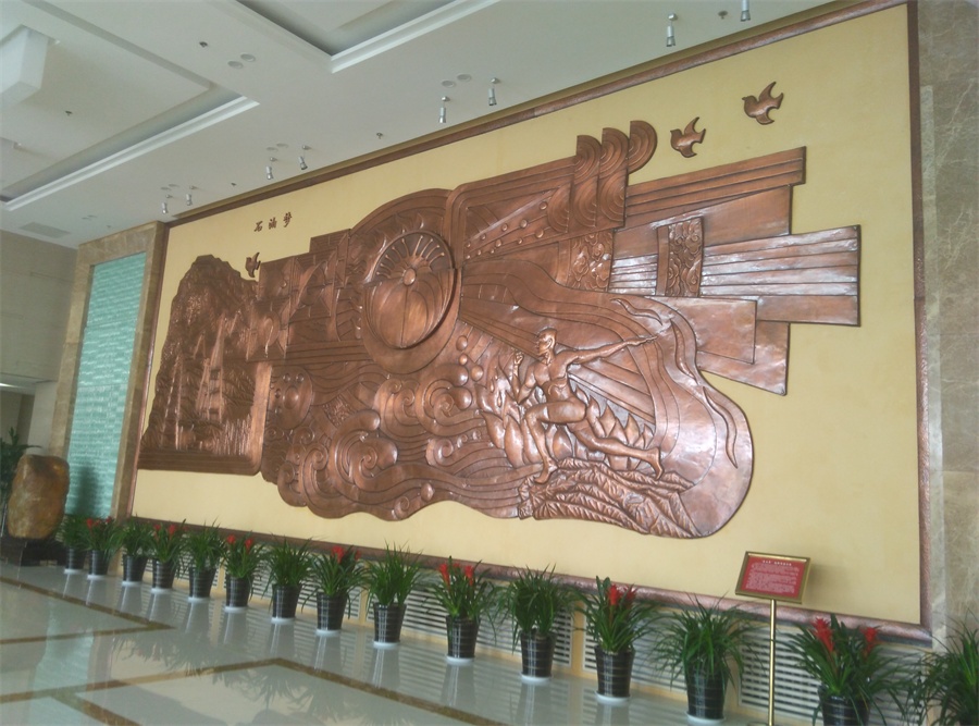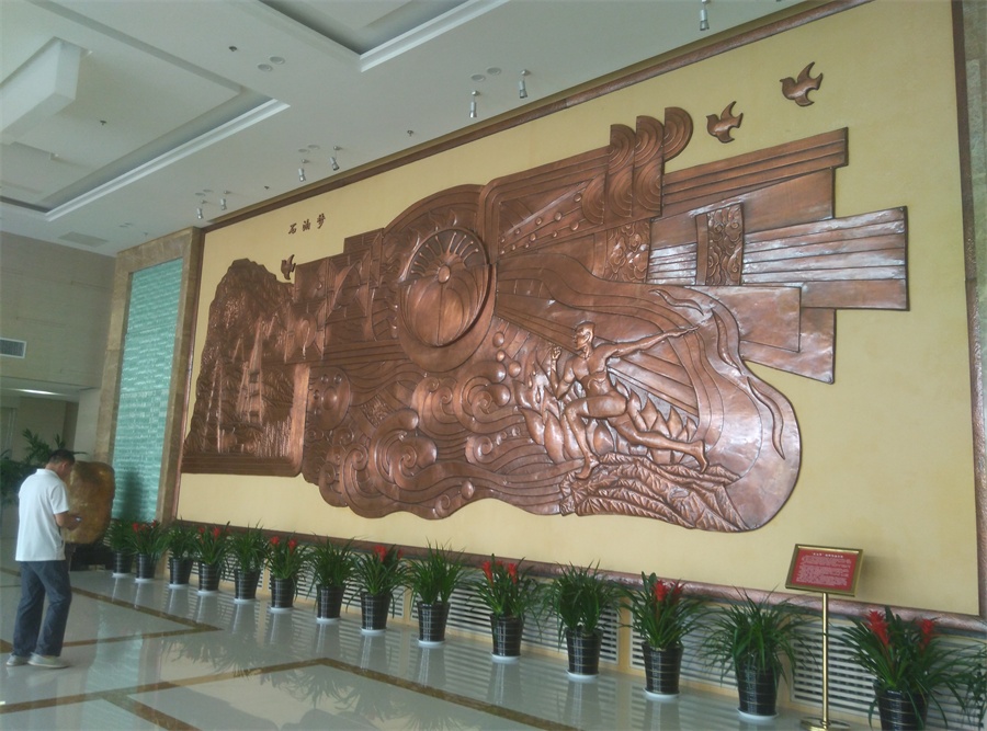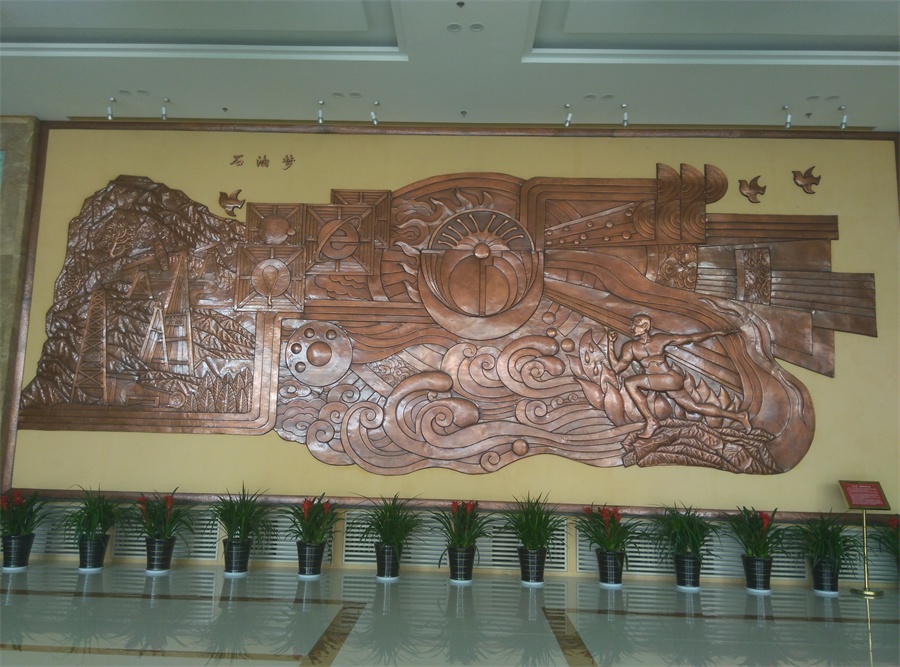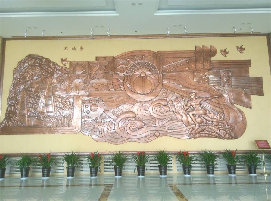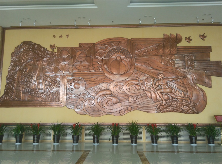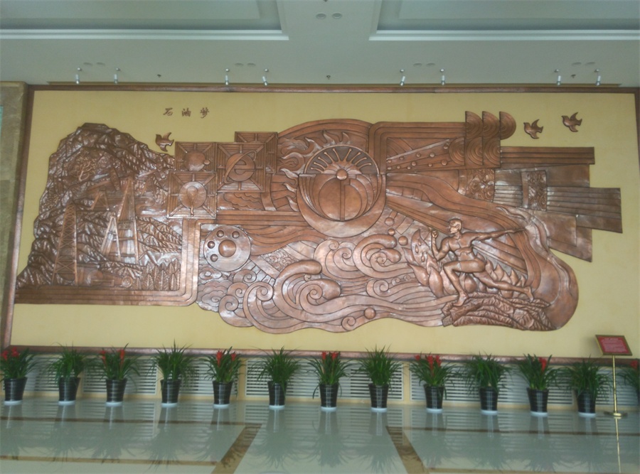 大型鍛銅浮雕——石油夢(mèng),于2015年8月正式落成中國(guó)石油大學(xué)華東校區(qū)(青島市黃島)。該浮雕,由紫銅板手工鍛造成型。寓意了石油人奮發(fā)進(jìn)取的創(chuàng)業(yè)精神及祖國(guó)石油業(yè)的蓬勃發(fā)展。