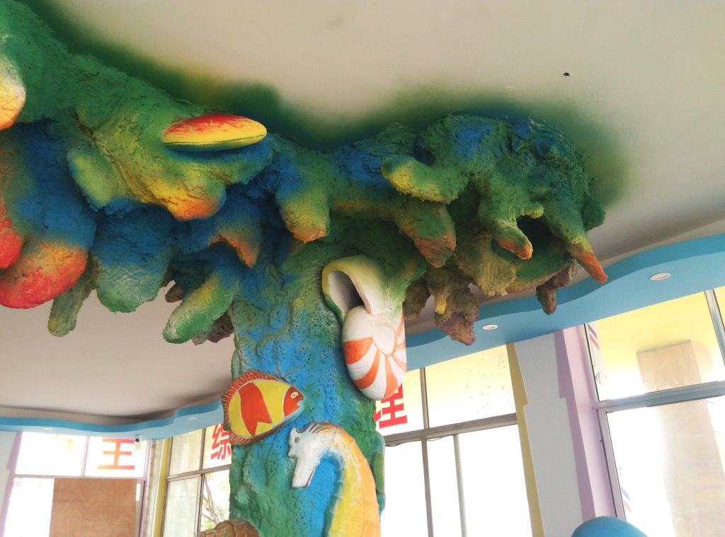 施工內(nèi)容:幼兒園室內(nèi)假樹、水泥假山大門、室內(nèi)房頂星空、水泥蘑菇亭、水泥小鹿雕塑、水泥仿真海底世界雕塑。