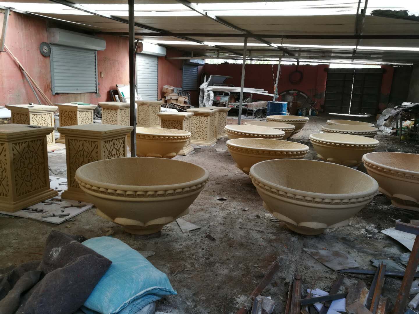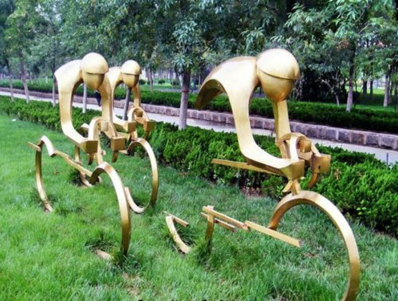施工內(nèi)容:玻璃鋼牛雕塑、騎車人——不銹鋼雕塑、砂巖花缽雕塑。