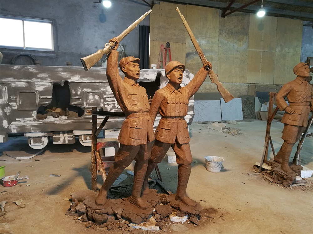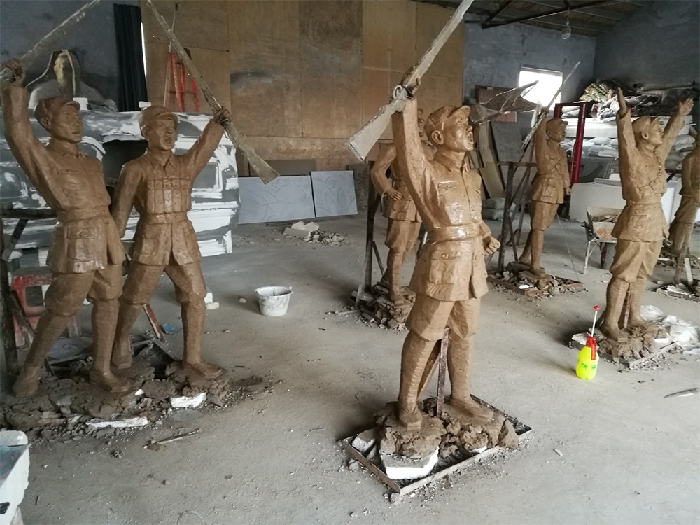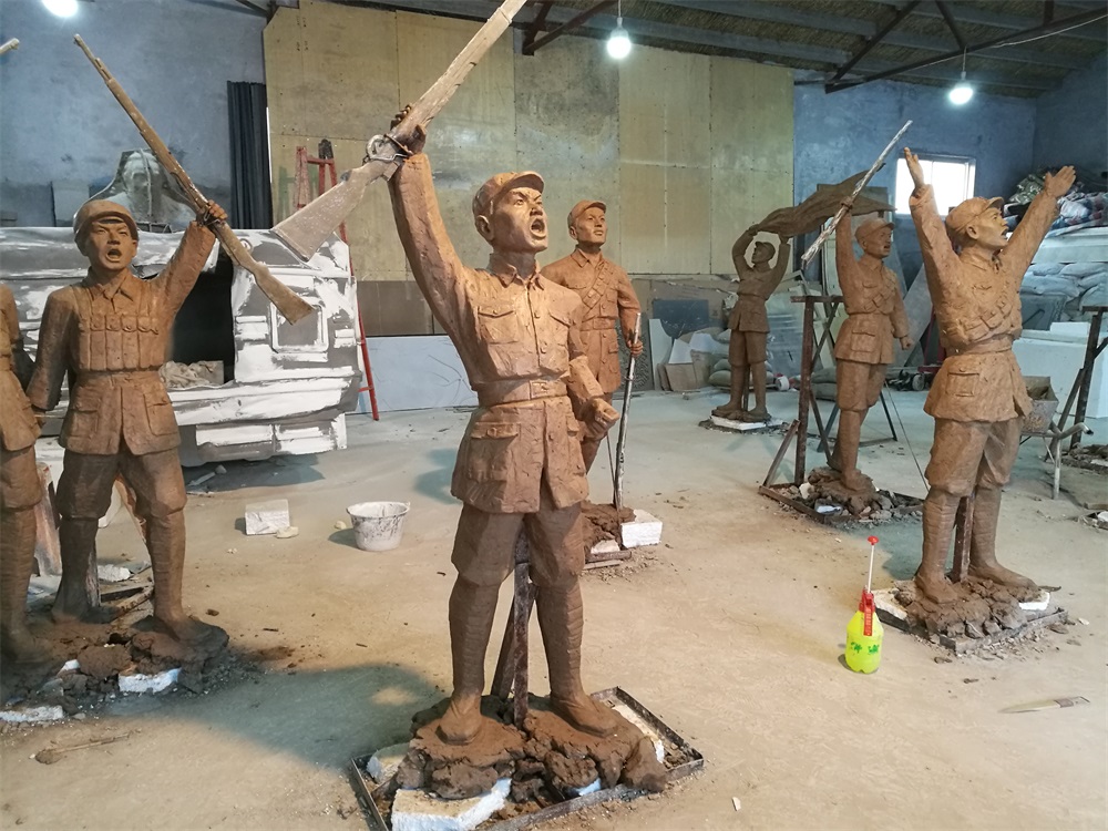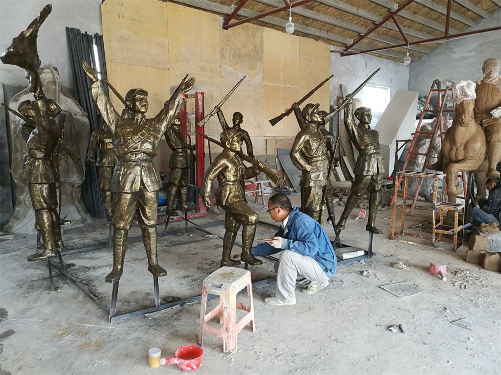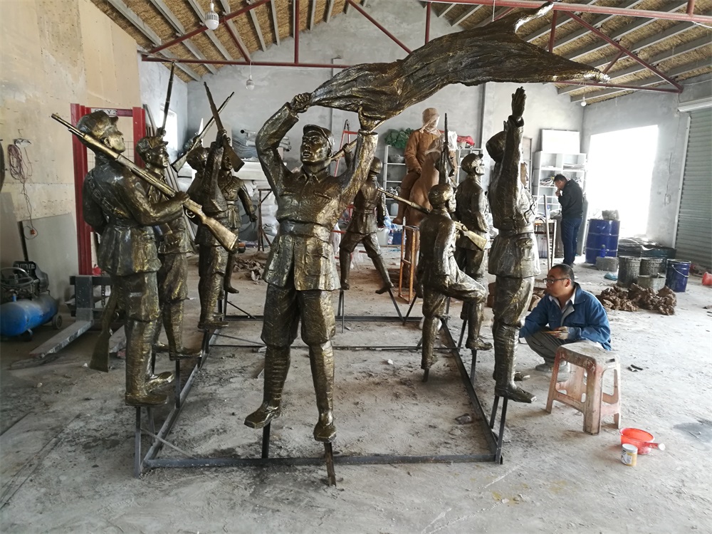 雕塑說明:紅旗雕塑采用不銹鋼鍛造工藝做型,高4米,長8米。人物群雕共10個人物,采用玻璃鋼工藝制作。