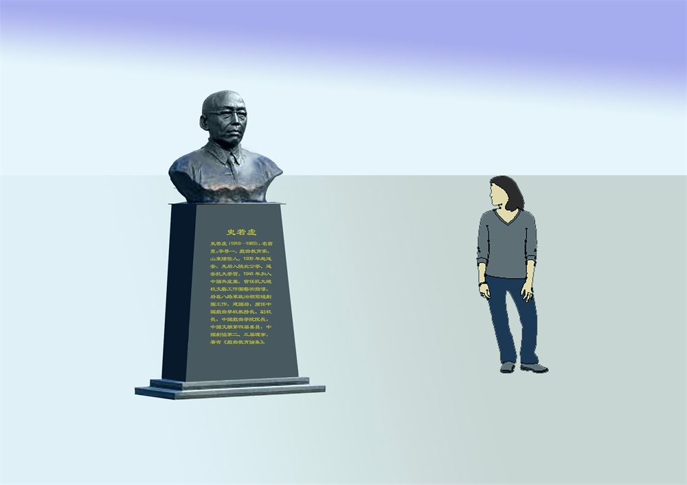 雕塑說明:該塑像由專業(yè)雕塑師塑型,玻璃鋼雕塑工藝制作。定做方提供了大量的史若虛先生生平照片供雕塑師參考,這些珍貴資料來(lái)之不易,在此表示感謝!關(guān)于史若虛先生的介紹,大家可以在百度百科查看。