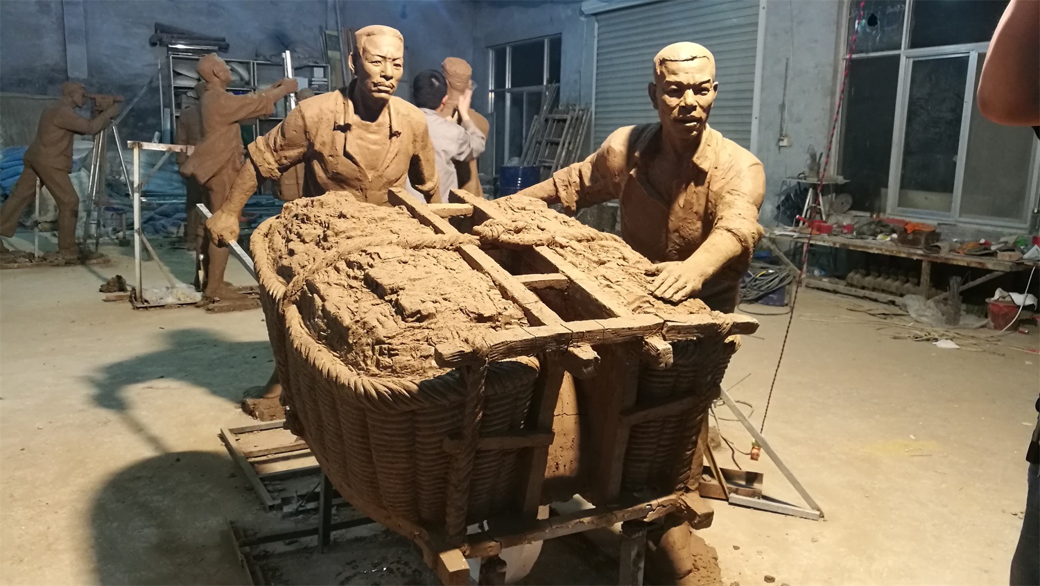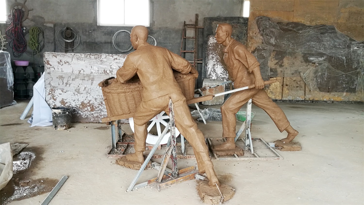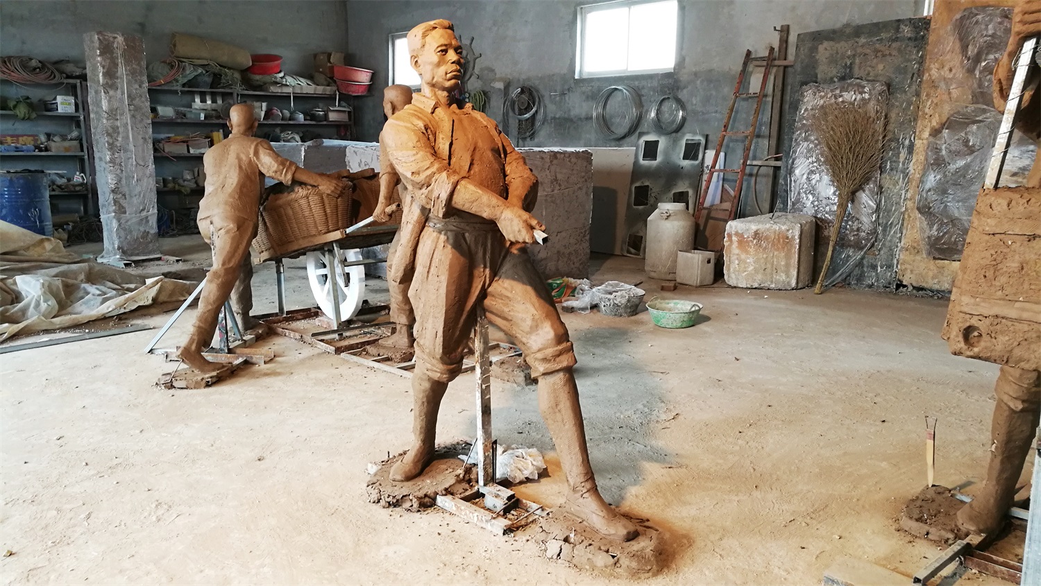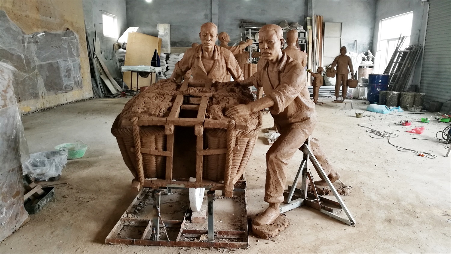 簡介:選取修建堤壩中人們熟悉的具有時(shí)代印記的幾個(gè)小場景,再現(xiàn)前輩治理黃河的場景,老輩人有共鳴感,對(duì)年輕人有實(shí)際的教育和激勵(lì)。展現(xiàn)黃河人奮斗歷史繼承黃河精神。泥塑于5月23日完成。