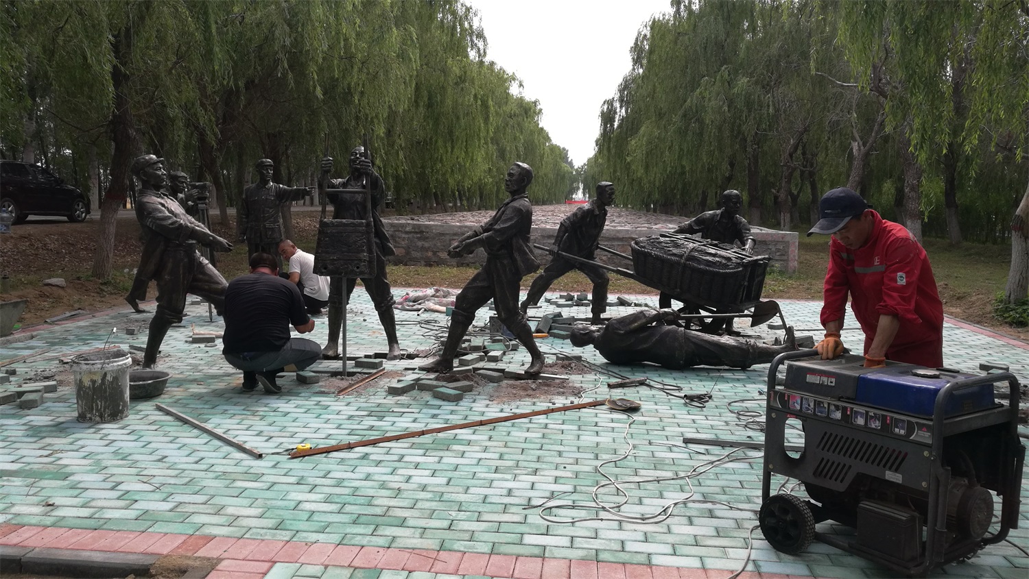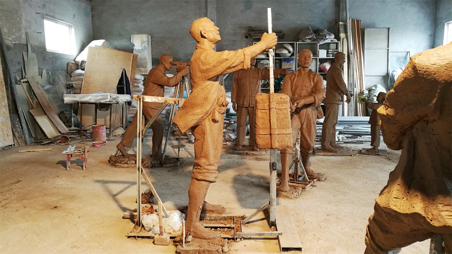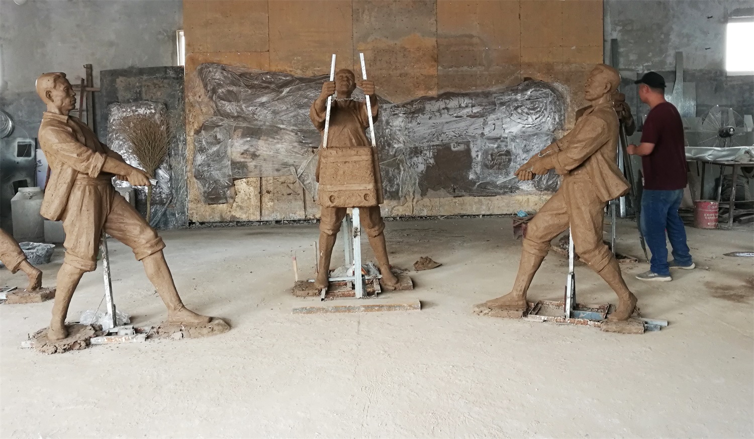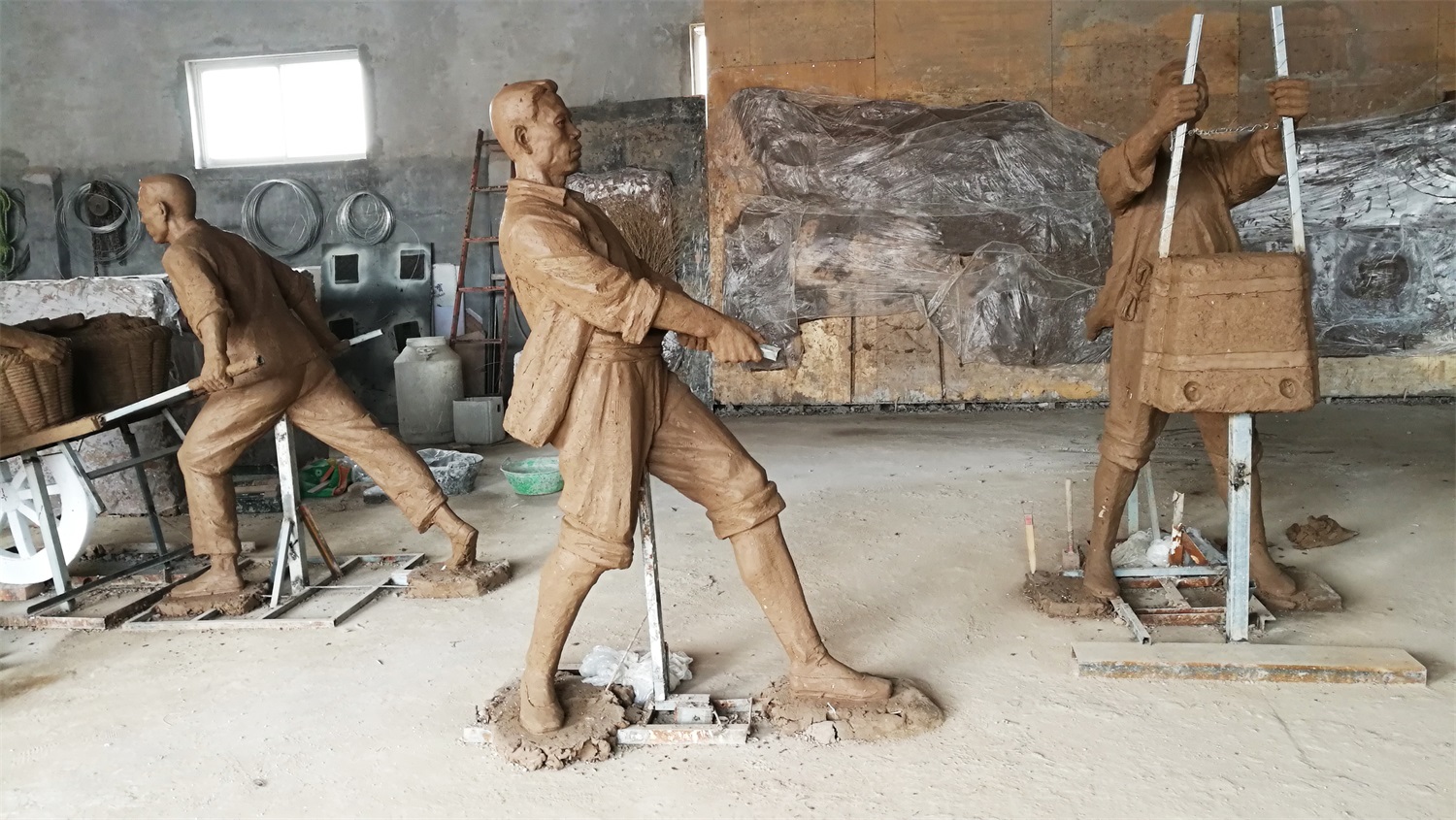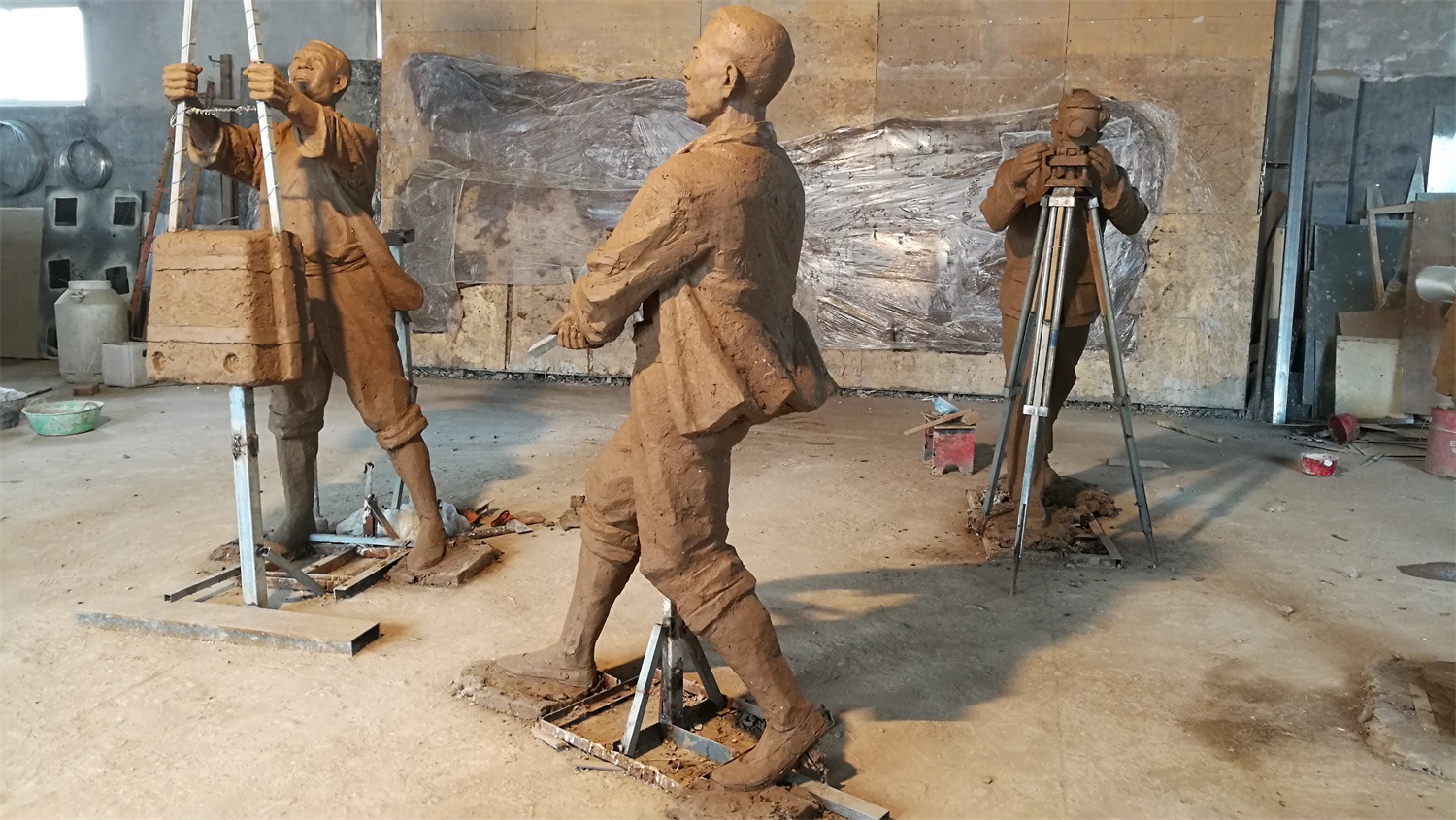 簡介:選取修建堤壩中人們熟悉的具有時(shí)代印記的幾個(gè)小場景,再現(xiàn)前輩治理黃河的場景,老輩人有共鳴感,對(duì)年輕人有實(shí)際的教育和激勵(lì)。展現(xiàn)黃河人奮斗歷史繼承黃河精神。泥塑于5月23日完成。